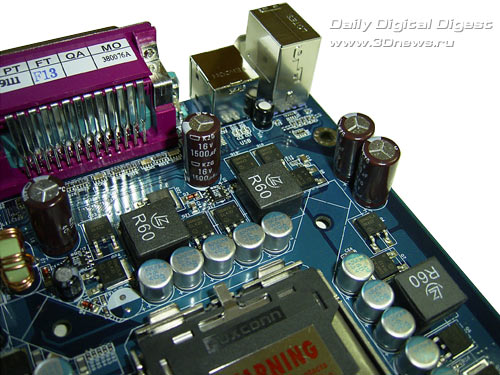 Однако не стоит ждать, что стоимость платы будет такая же, как и у плат на i865PE + Socket478. Во первых на цену платы сильно повлияет дорогой процессорный сокет LGA775, усложненный дизайн, и дорогие элементы модуля питания.