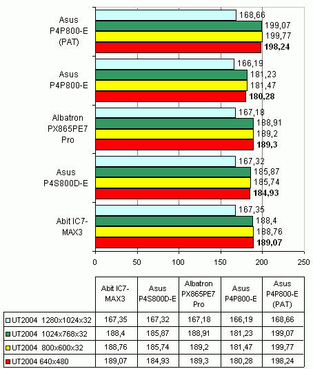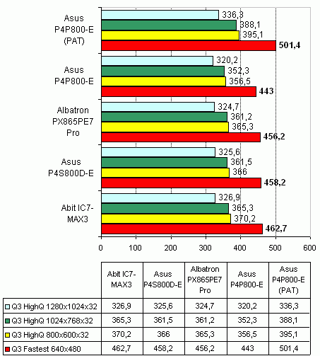 С другой стороны, плата Albatron PX865PE7 Pro демонстрирует отличные результаты в области разгона. На результаты оверклокинга совершенно не влияют проблемы с увеличением частоты шины PCI Express, поскольку поддержка этой шины отсутствует у i865PE :).