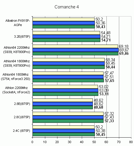 Падение производительности очень мало, и составляет ~8%. Дело в том, что игра Comanche4 является наиболее процессорозависимым тестом.
