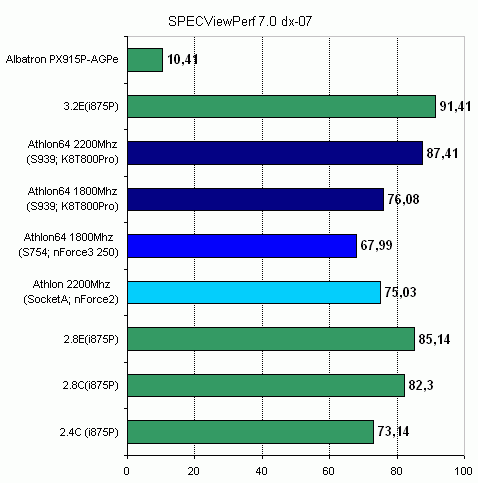 В программах для научных расчетом мы видим колоссальное падение производительности, которое достигает 80-90%! Очевидно, что данный набор приложений активно пересылает большие объемы информации по шине AGP. А при эмуляции AGP через PCI, мы резко теряем в скорости. Вот своеобразный ответ всем противникам шины AGP, которые несколько лет назад утверждали, что скорости шины PCI вполне достаточно. Аналогично, это служит ответом противникам шины PCI Express, которые сейчас утверждают, что скорости AGP вполне достаточно.
