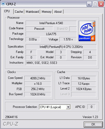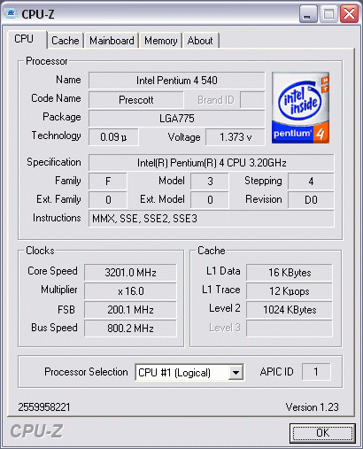 | Процессор | Процессор Intel Pentium4 LGA775 540 (3.2Ггерц) |