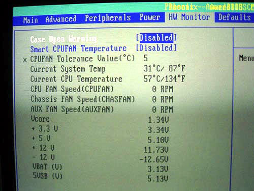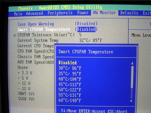 Плата отображает текущие значения температуры процессора и системы, скорости вращения трех вентиляторов (из трех), а также уровни напряжений. Кроме того, для процессорного кулера доступна функция SmartFan, которая позволяет регулировать скорость вращения в зависимости от температуры процессора.