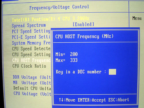 Удобно то, что необходимое значение частоты FSB можно ввести с клавиатуры.