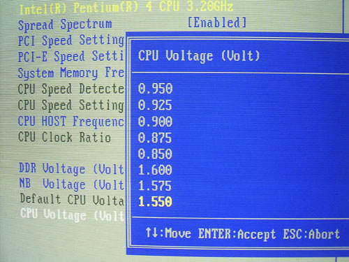 - Изменение напряжения на процессоре, памяти и чипсете. |