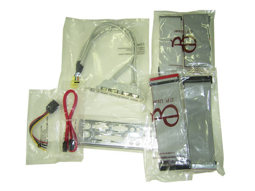 Комплектацию нельзя назвать ни бедной, ни богатой. Во-первых пользователь получает полный комплект IDE шлейфов, руководство по созданию RAID массивов, краткое руководство пользователя, брекет с 4 портами USB2.0, а также наклейку с схемой-расположением перемычек. Обычно, когда хотят сэкономить на комплектации, производители сокращают(или вовсе убирают) перечисленные компоненты.