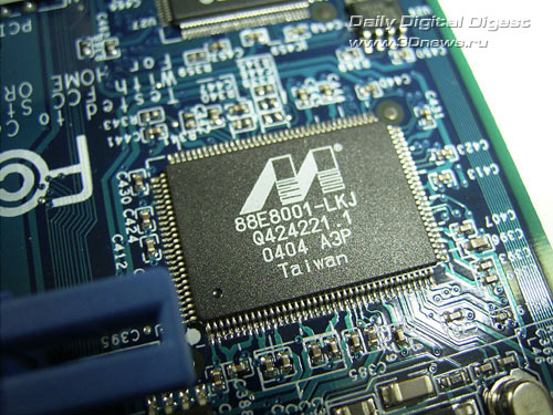 Теперь поговорим о коммуникационных возможностях платы. На Albatron PX915P-AGPe установлен высокоскоростной сетевой контроллер Marvell Yukon 88E8001 (Gigabit Ethernet), который подключен к шине PCI.