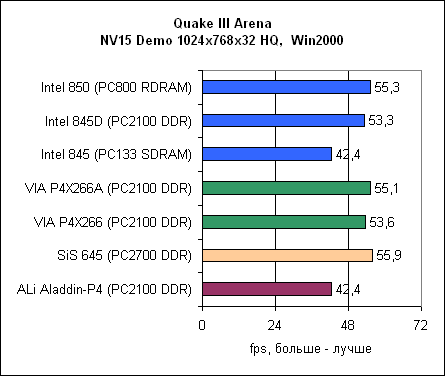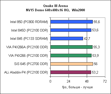 Во всех тестах Quake ALi Aladdin выходит на последнее место среди DDR чипсетов.