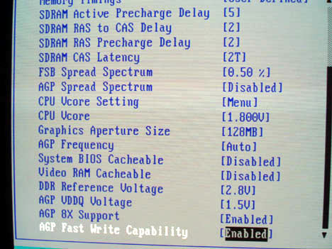 Если напряжение на AGP практически не влияет на стабильность разогнанной системы, то вот диапазон изменения Vmem очень важен. По этому показателю плата Asus A7N8X превосходит плату Abit (максимальное Vmem = 2.7V), но уступает плате Epox (Vmem = 2.9V).