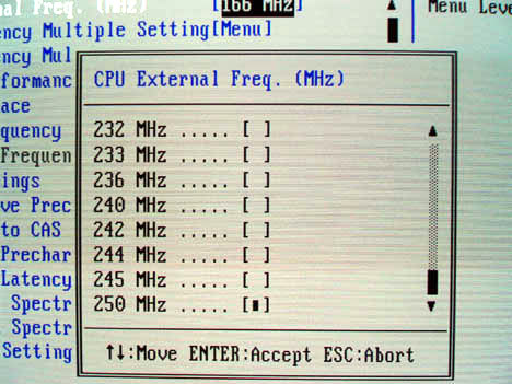 Частота системной шины может изменятся в пределах от 100 Мгерц до 250Мгерц с шагом 1-5Мгерц.