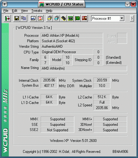 Кроме того, я довольно долго проработал на частоте FSB = 203 Мгерц. Система демонстрировала хорошую стабильность во всех приложениях (Q3, Serious Sam итп) кроме 3DMark 2001 (что, к сожалению, не дало мне возможность заявить о полной стабильности).