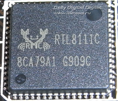 На плате установлен высокоскоростной сетевой контроллер RTL8111C (Gigabit Ethernet), подключенный к шине PCI Express x1.