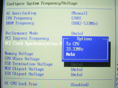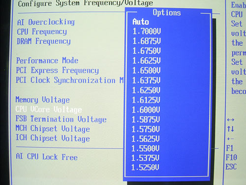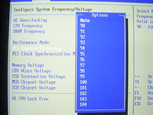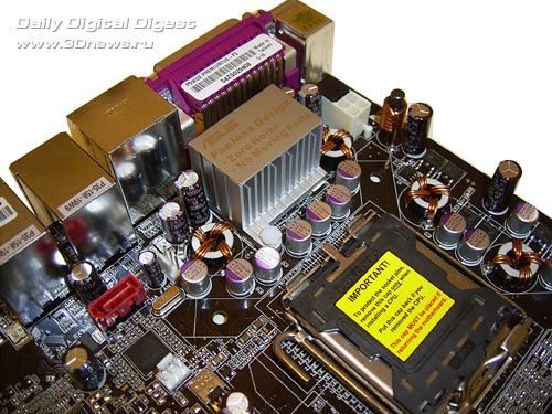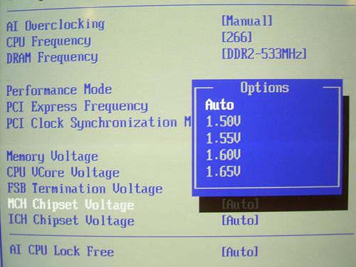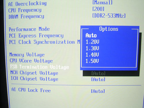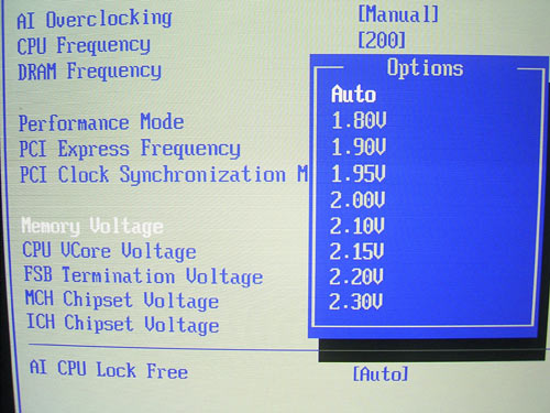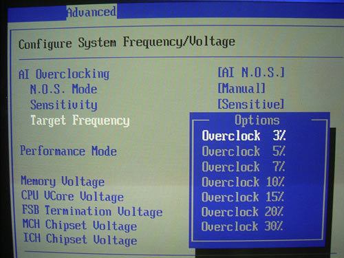 Разгон и стабильностьПрежде чем переходить к разгону, рассмотрим преобразователь питания. Он имеет 4х фазную схему, в которой установлены пять конденсаторов емкостью 1000 мкФ и 15 конденсаторов емкостью 820мкФ. Для улучшения охлаждения модуля питания использована новая технология Asus Stack Cool II, которая представляет собой алюминиевый радиатор на лицевой стороне платы.   Теперь переходим к рассмотрению функций разгона.  Во-первых, плата Asus P5WD2 позволяет изменять частоту системной шины в диапазоне от 100 до 450Мгерц с шагом 1 Мгерц.  Удобно то, что необходимое значение частоты FSB можно ввести с клавиатуры. Во-вторых, плата Asus P5WD2 позволяет изменять напряжение на процессоре(Vcore) в очень широком диапазоне: от 1.3V до 1.7V с шагом 0.0125V.   Далее - опытный пользователь может увеличить Vmem c штатных 1.8V до 2.3V (с шагом 0.05-0.1V).  Кроме этого в нашем распоряжении есть функция повышения напряжения на чипсете, причем как на северном мосте (от 1.5V до 1.65V с шагом 0.05V)  , так и на южном.  Доступные значения 1.05V и 1.2V. Кроме того, есть возможность поднять напряжение на FSB от 1.2V до 1.5V с шагом 0.1V.  Также есть возможность изменить частоту шину PCI Express, в диапазоне от 90Мгерц до 150Мгерц,   и зафиксировать шину PCI (это важно для корректной работы жестких дисков):  Хочу отметить, что программисты Asus добавили функцию подсветки другим цветом тех параметров, которые (по их мнению) выходят за рамки безопасного разгона. Теперь попробуем функции разгона на практике. Итак, плата Asus P5WD2 показала отличные результаты: стабильная работа на частоте FSB = 316Мгерц с процессором Extreme Edition,  и 296Мгерц с процессором Pentium4 660.  Единственная проблема возникающая при разгоне заключается в том, что система отказывалась выполнять "горячую" перезагрузку. Теперь пара слов о параметре "AI Overclocking", который предназначен для начинающих пользователей.  Простым выбором нужного значения, пользователь может разогнать систему (путем повышения частоты FSB) на 5%, 10%, 15%, 20% и 30%, а также выбрать из нескольких стандартных комбинаций.  При этом система будет постоянно работать в разогнанном режиме, что негативно скажется на температурном режиме. Поэтому более предпочтительным вариантом выглядит режим NOS (Non-Delay Overclocking System), в котором разгон осуществляется именно тогда, когда нужно. Другими словами повышение частоты FSB происходит в момент запуска ресурсоемкого приложения (пример - игра). А после выхода из приложения, система возвращается к штатной частоте. Выбор степени разгона осуществляется с помощью параметра "Turbo NOS"  В сочетании с технологией Q-Fan, NOS позволит многим пользователям получить приятную прибавку производительности. Конечно, хардкорные оверклокеры предпочитают постоянный разгон, путем выставления настроек биоса. Однако нужно помнить, что ядро Prescott (2) выделяет очень много тепла, даже с использованием механизмов снижения частоты и напряжения во время простоя. Поэтому постоянная работа в режиме разгона - не самый разумный выбор (для Intel систем).