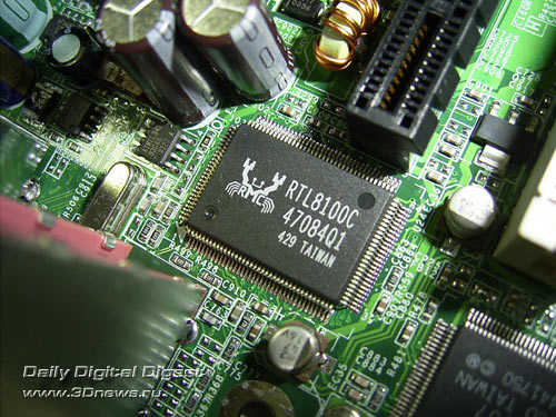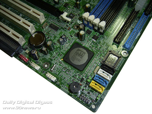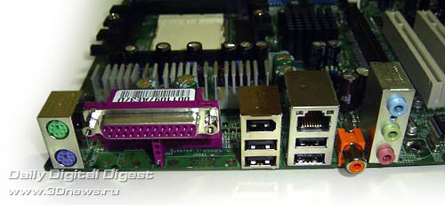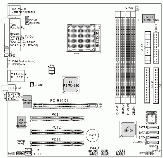 Возможности расширения![]() Как мы уже говорили, чипсет ATI Xpress 200 поставляется с южным мостом IXP400. Последний имеет встроенную поддержку четырех каналов SerialATA. ![]() Соответствующие разъемы установлены около чипа, и все они по разному окрашены. Итого к материнской плате MSI RX480M2 можно подключить 8 жестких дисков: 4 по протоколу ParallelATA и 4 по SerialATA. Далее - на плате установлен сетевой контроллер RTL8100C с пропускной способностью 100Мбитс. ![]() Также плата поддерживает 8 портов последовательной шины USB2.0, четыре из которых расположены на задней панели, а еще четыре подключаются с помощью брекетов. Если поддержка USB2.0 встроена в южный мост, то для поддержки последовательной шины Firewire, инженерам MSI пришлось устанавливать дополнительную микросхему. Это чип VT6307, благодаря которому RX480M2 поддерживает два порта IEEE1394: один из них установлен на задней панели, другой реализован при помощи брекета. ![]() И пара слов о встроенном звуке, который основывается на кодеке ALC658. ![]() Пользователь получает 6 канальную звуковую подсистему, с SP-DIF выходом на задней панели платы. ![]() Обратите внимание на отсутствие портов COM1 и COM2, а также GAME. Дело в том, что на этом же дизайне MSI производит плату на чипсете ATI RS480 со встроенным видеоядром, которые имеет VGA и DVI выходы на задней панели (именно на месте COM портов). Однако один COM порт пользователь все же получит, но с помощью брекета (соответствующий разъем установлен за PS2 разъемами). ![]() традиционная схема джамперов на плате На плате MSI RX480M2 установлено две перемычки: JCMOS1 - предназначена для сброса настроек CMOS; JPWD1 - предназначена для сброса пароля (обе находятся в левом нижнем углу платы).