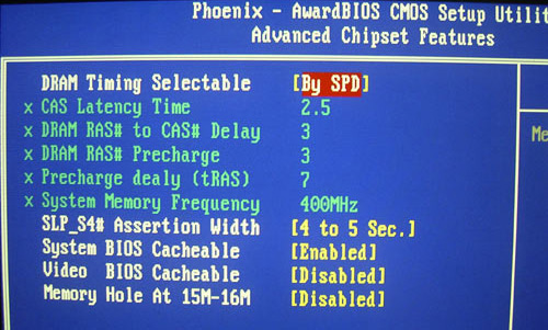 | Память | 2x256 Мбайт OCZ PC3200 (тайминги по SPD) |
