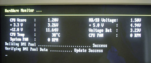 Хорошо, что я перешел к опытам по разгону после фотографирования настроек биоса и тестирования производительности. Дело в том, что при первой же попытке разгона плата зависла, помигала на прощание кулером Gigabyte 3D Cooler и больше не стартовала.