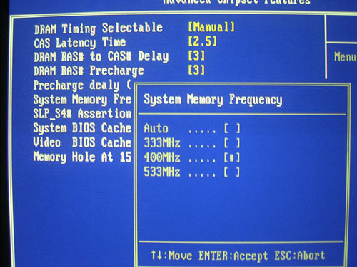 Инженеры Biostar дают пользователю свободно выбирать любой из возможных делителей частоты памяти 56 (DDR333), 11 (DDR400) и 43(DDR533). Реальной пользы от повышающего делителя нет (43), а вот понижающими можно спокойно пользоваться, особенно при разгоне.