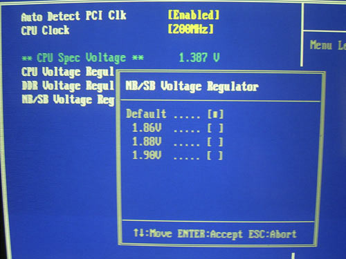Следующий пункт еще забавнее: изменение напряжения на чипсете в том же самом диапазоне от 1.86V до 1.9V с шагом 0.02V.