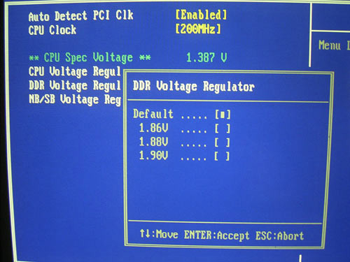 Странно потому, что штатное напряжение памяти DDR-I равно 2.5V. Создается такое впечатление, что перед нами немного модифицированный биос от какой-то платы с поддержкой DDR-II (там штатное напряжение = 1.8V).