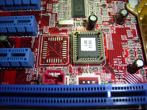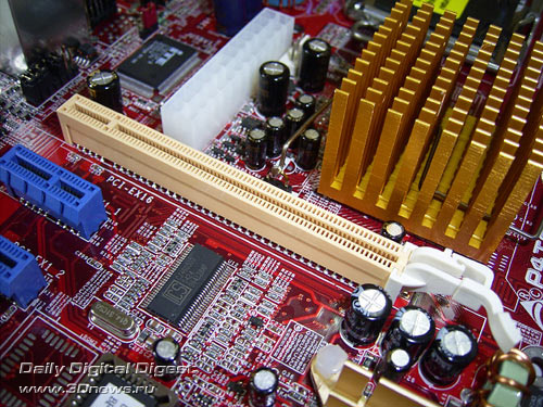 И наконец, на плате присутствует высокоскоростной сетевой контроллер RTL8110S (Gigabit Ethernet), который подключен к шине PCI.