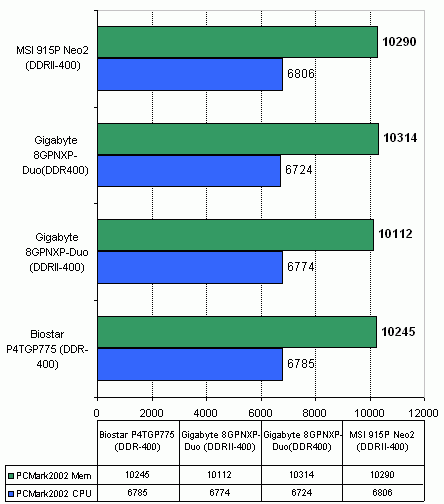 В качестве конкурентов мы использовали платы Gigabyte 8GPNXP-Duo и MSI 915P Neo2 (обе на чипсете i915P). В тестовой системе было использовано следующее оборудование: