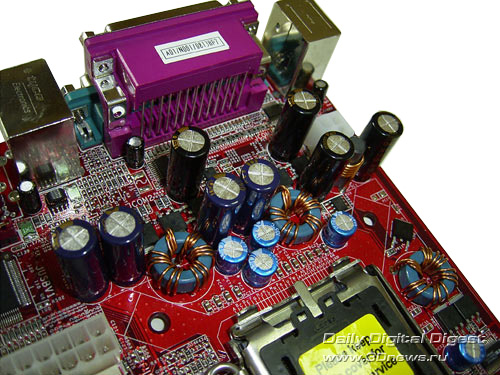 Кстати, это не первый случай, когда количество сетевых контроллеров превышает число разъемов на задней панели. Мы могли это видеть на плате Asus P5AD2 Premium на чипсете Intel 925X. Но в случае с той моделью, так сделано специально - второй разъем RJ-45 находится на специальном брекете (очень оригинальное решение).