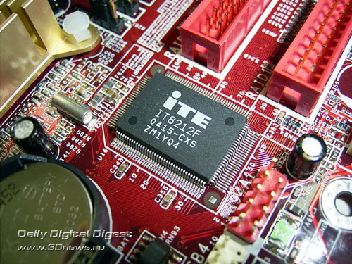 Кроме того, на плате установлен двухканальный ParallelATARAID контроллер ITE8212F, к которому можно подключить 4 диска, и объединить их в RAID массивы уровня RAID0, RAID1, RAID0+1 и JBOD.