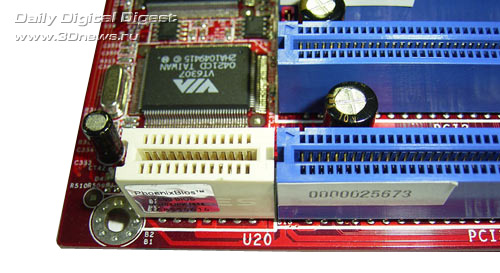 Также плата Biostar P4TGP775 поддерживает другой вид последовательной шины - IEEE1394 ("Firewire"). Для этого на плату установлен контроллер VT6307 производства VIA.