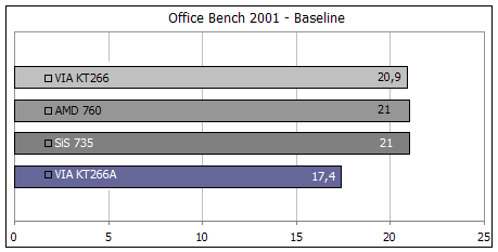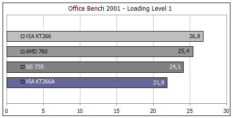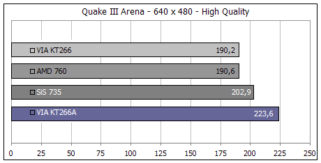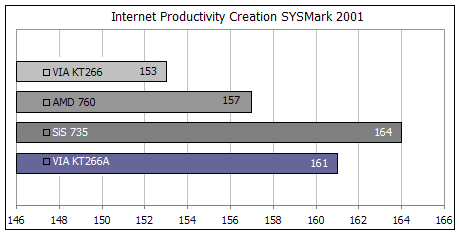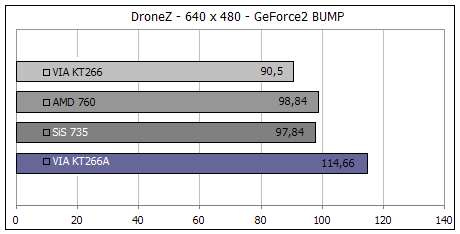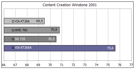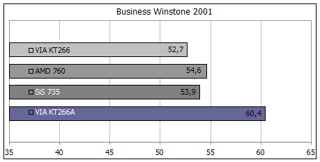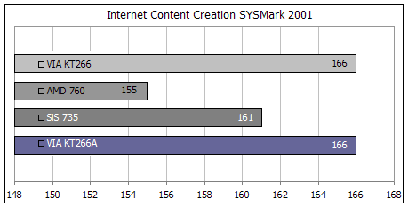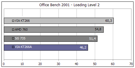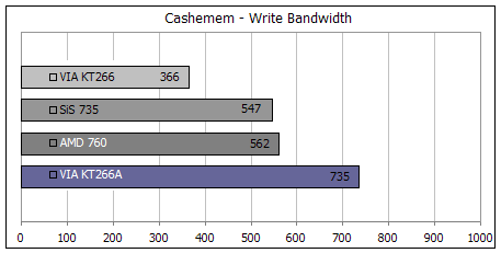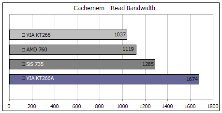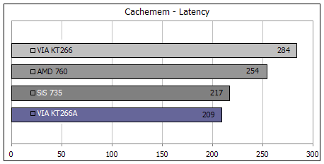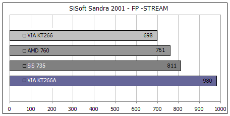 Обычно в этом тесте все чипсеты показывают примерно одинаковые результаты, но не в случае с нашим KT266A.