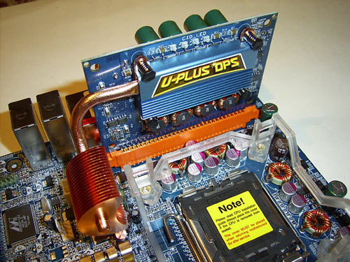 ВыводыПлата Gigabyte 8AENXP-D отличается высокой стабильностью и производительностью, отличными возможностями расширения, а также богатой комплектацией. Учитывая вполне нормальную для high-end уровня цену (~240$) можно сделать вывод, что данная плата один из лучших продуктов в своем классе. На достоинствах комплектации остановимся более подробно. Во-первых, это дополнительная плата расширения с поддержкой стандарта беспроводной связи WiFi, дополнительный вентилятор на северный мост, переходник ParallelATA=>SerialATA, а также модуль U+DPS. Вместе с платой все это богатство упаковано в двойную коробку с ручками для переноски. Отдельно отметим вполне приличные результаты в области разгона. Правда для достижения более высоких результатов необходимы более широкие диапазоны установки напряжений (прежде всего напряжение на процессоре), а также функция повышения напряжения на чипсете.  И еще раз подчеркнем особенности платы. Это, прежде всего, 6 слотов DIMM, 11 портов USB2.0, а также фирменная технология Gigabyte Dual Power System.