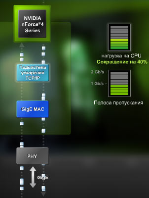 Вторая технология (TCP/IP Acceleration) позволяет решать часть низкоуровневых задач при обработке пакетов (иными словами, чипсет берет на себя часть функций и задач, которые обычно реализованы в драйвере сетевой карты). Фактически, технологии FirstPacket и TCP/IP Acceleration являются следующим этапом развития аппаратного файрвола ActiveArmor. Следующая технология называется DualNet, и позволяет использовать два гигабитных сетевых контроллера как независимо, так и в совместном режиме (условно, оба контроллера работают как один двухгигабитный).