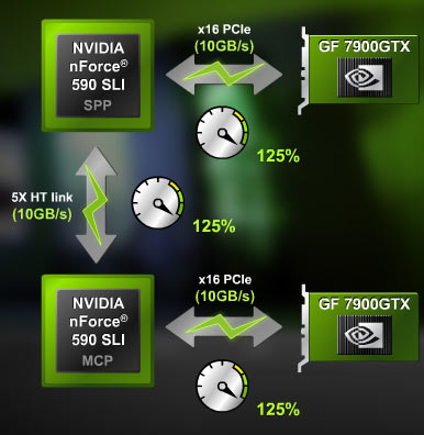 Еще пара технологий реализованы исключительно в чипсете nForce 590 SLI. Это LinkBoost и SLI-Ready Memory.