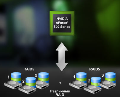 Естественно кроме аппаратных улучшений чипсетов, NVIDIA усовершенствовала и программно-аппаратную часть. В частности, появились улучшения в технологии MediaShield; например, реализована поддержка RAID массивов уровня 5.