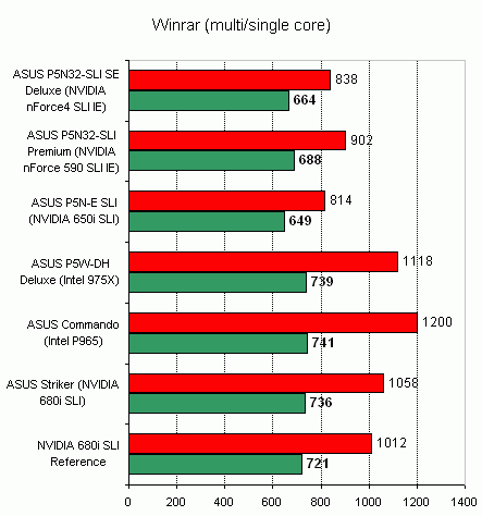 На производительности мы подробно останавливаться не будем, поскольку все чипсеты показали приблизительно одинаковую скорость работы. Исключение составляет только WinRAR, производительность которого напрямую зависит от задержек при доступе к памяти.
