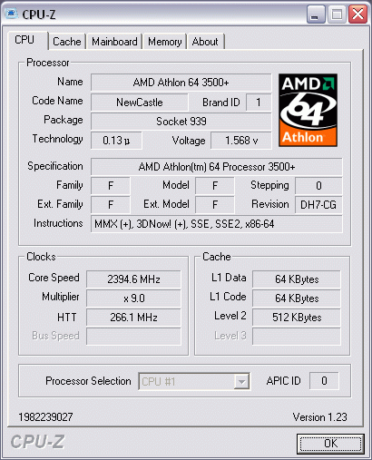 | Процессор | Процессор AMD Athlon 64 3500+ (реальная частота 2.2Ггерц, 200х11) |