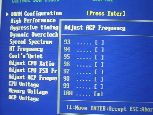 И наконец, пользователь может установить частоту шины AGP.