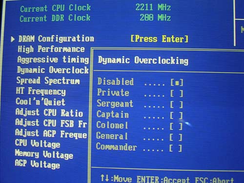 Пара слов о динамическом разгоне (D.O.T - Dynamic Overclocking Technology). Соответствующий пункт в меню имеет несколько ступеней: