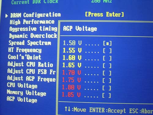 Далее - плата MSI K8N Neo2 позволяет изменять напряжение на шине AGP.