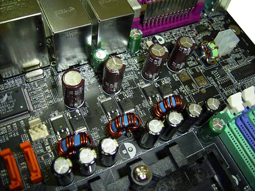 Модуль питания платы MSI K8N Neo2 выполнен по трехканальной схеме и содержит восемь конденсаторов емкостью 1800 мкФ и 4 по 1500мкФ.