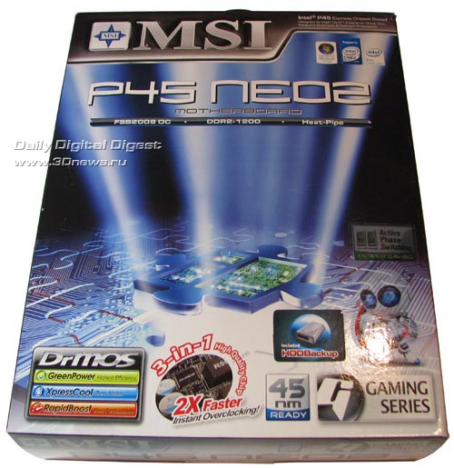 Упаковка платы MSI P45 Neo2 имеет следующий дизайн: