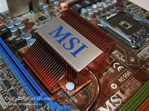 Дизайн PCB платы MSI P45 Neo2 имеет как достоинства, так и недостатки. К первым можно отнести удобное расположение разъемов питания (по краям платы), а ко вторым - проблему блокировки слотов DIMM первой PCI Express-видеокартой.