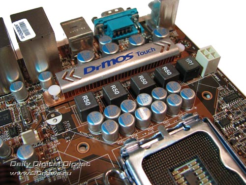 Прежде чем переходить к разгону, рассмотрим преобразователь питания. Он имеет 5-канальную схему, в которой установлены четыре конденсатора емкостью 470 мкФ и 12 конденсаторов емкостью 820 мкФ.