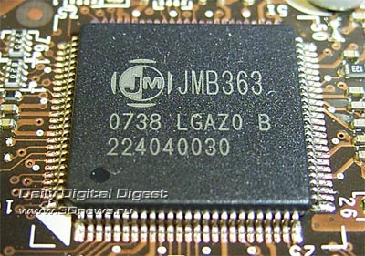 Кроме того, еще пара SerialATA II-устройств может быть подключена к контроллеру JMB363 производства JMicron. Этот же чип обеспечивает поддержку одного канала ParallelATA. Итого - к плате MSI P45 Neo2 можно подключить десять жестких дисков (восемь SATA + два PATA).