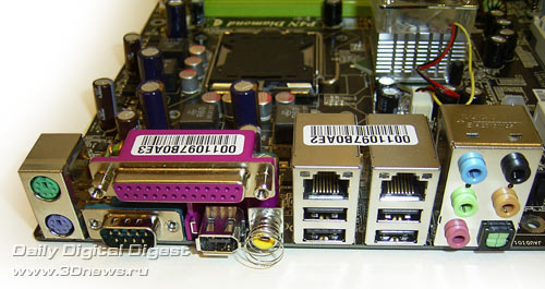 На месте одного из COM портов находятся порт Firewire и коаксиальный выход SP-DIF (оптический выход SP-DIF находится вместе с остальными аудиовыходами). Отсутствующий COM порт даже не предусмотрен дизайном платы.