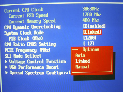 Также отметим, что частота памяти задается аналогичным образом (см. пред. страницу). Опытные пользователи могут задавать частоту памяти вручную, а для начинающих доступен режим Linked, при котором частота памяти увеличивается автоматически.