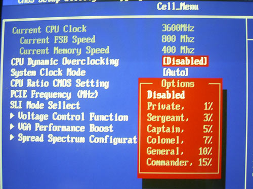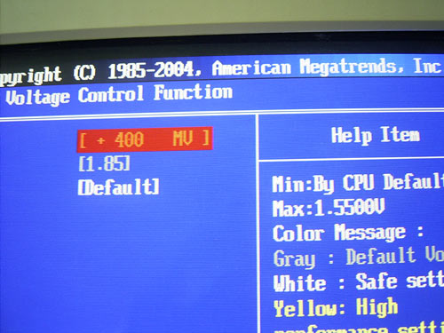 Следующий пункт - повышение напряжения на процессоре (Vcore) на 0.4V с шагом 0.0125V.