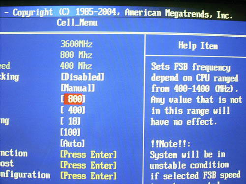 Во-первых, плата MSI P4N позволяет изменять частоту системной шины в диапазоне от 100 до 350Мгерц с шагом менее 1 Мгерц. Причем, программисты MSI для выбора FSB используют учетверенное значение частоты, что и позволяет наращивать частоту с шагом 0.25Мгерц (впрочем, практического смысла это не имеет). Кроме того, плата позволяет изменять множитель процессора в доступном диапазоне (для каждой модели процессора он разный).