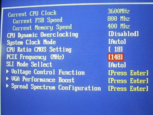 И наконец пользователю доступно изменение шины PCI Express в диапазоне от 100Мгерц до 148Мгерц.