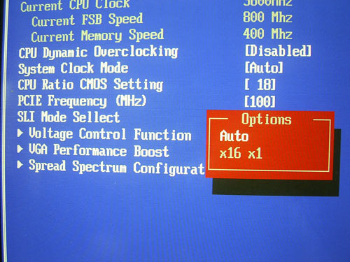 Последняя интересная функция - программный выбор режимов Single или SLI ("SLI Mode Select"):