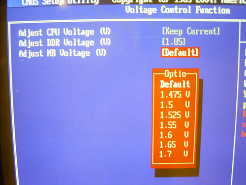 Кроме этого, оверклокер может увеличить напряжение на чипсете до 1.7V с шагом 0.05V: