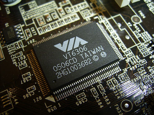 Кроме двух сетевых контроллеров, плата P4N-Diamond поддерживает два вида последовательной шины. Во-первых это USB2.0 - 10портов: 4 порта расположены на задней панели и еще 6 подключается при помощи брекетов. Во-вторых это три порта Firewire: один на задней панели + 2 через брекет. Поддержка USB2.0 встроена непосредственно в чипсет, а для поддержки Firewire на плату установлен доп. контроллер VT6306 производства компании VIA.